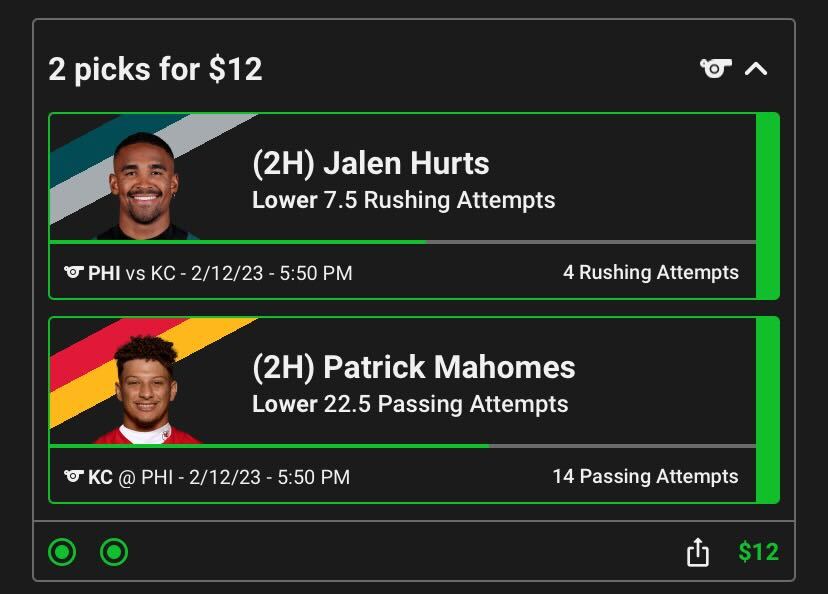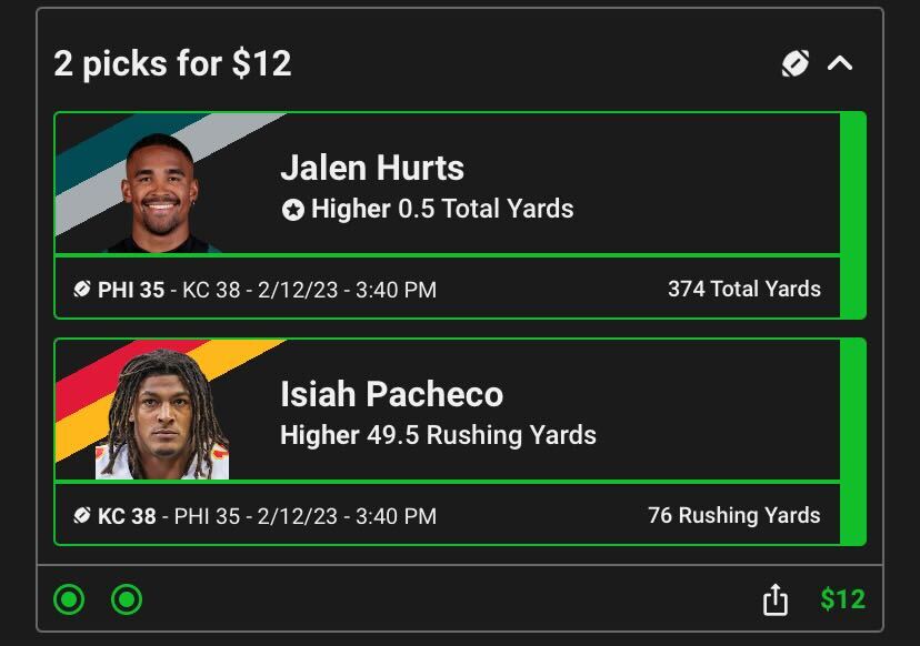 You’ll also want to keep an eye out for promotions from apps like Underdog and Sleeper. For the Super Bowl, all Philadelphia Eagles QB Jalen Hurts had to do was account for 1 total yard of offense for me to win that portion of my contest. Talk about a no-brainer!