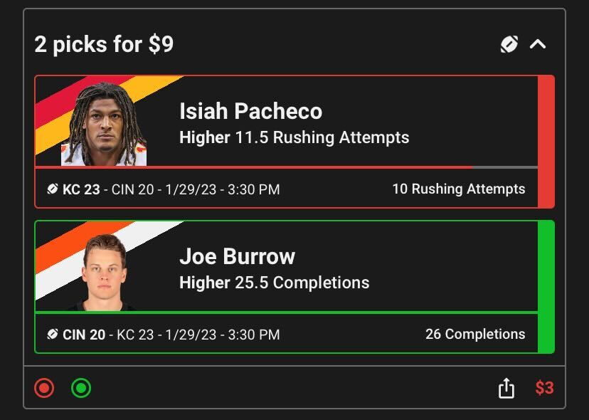 Fortunately for me, Kansas City Chiefs RB Isiah Pacheco also lived up to his end of the deal and I won money on the promotion: