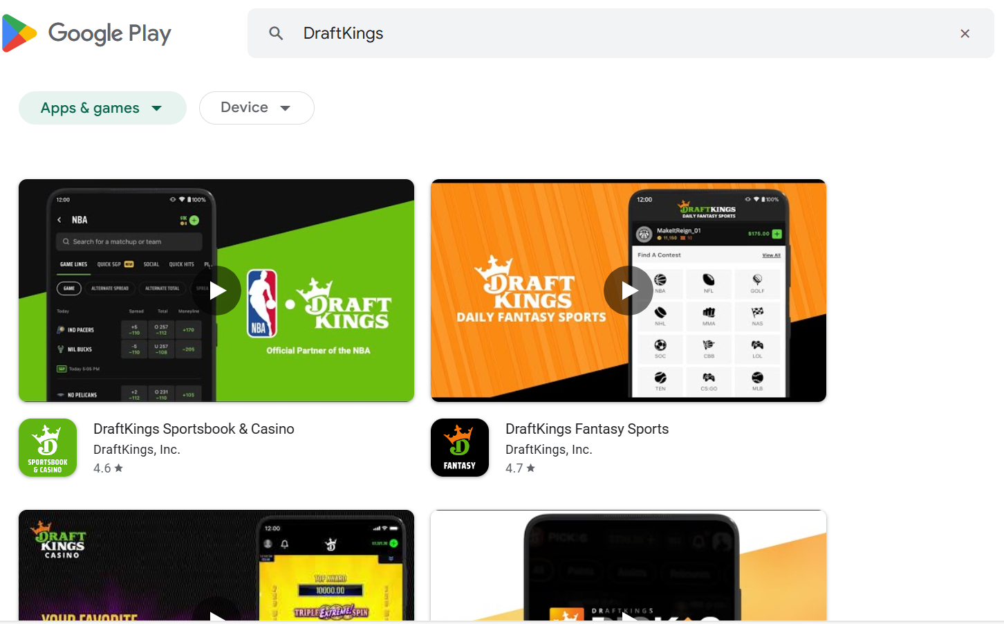 Apple’s App Store gives the DraftKings Sportsbook & Casino app a 4.8 rating with nearly 600,000 reviews and ratings.
