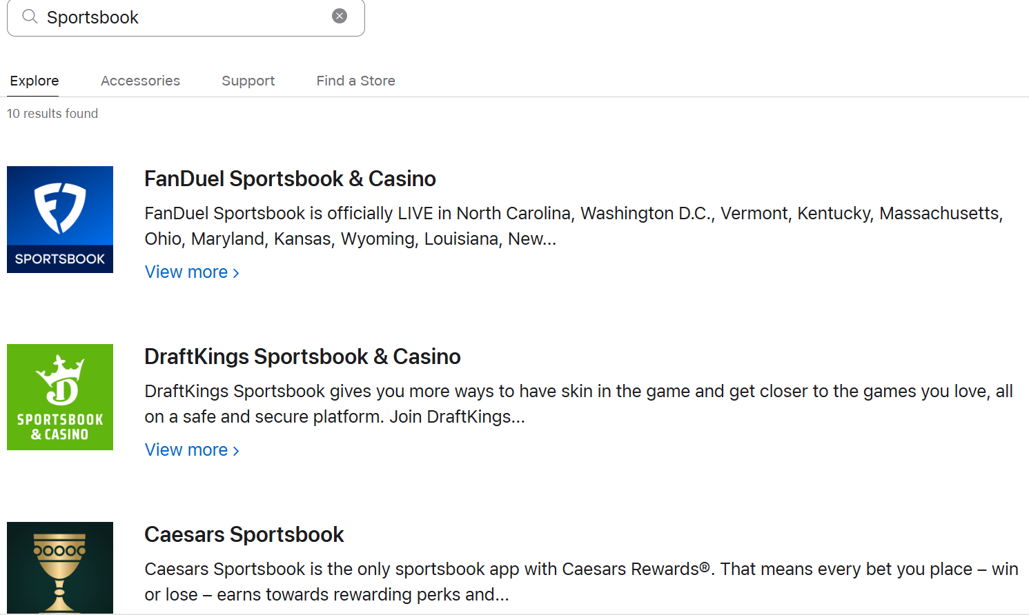 For Apple Products such as an iPhone or iPad, simply navigate to the App Store and type your sportsbook of choice. Once you’ve found the app, click “Get”.