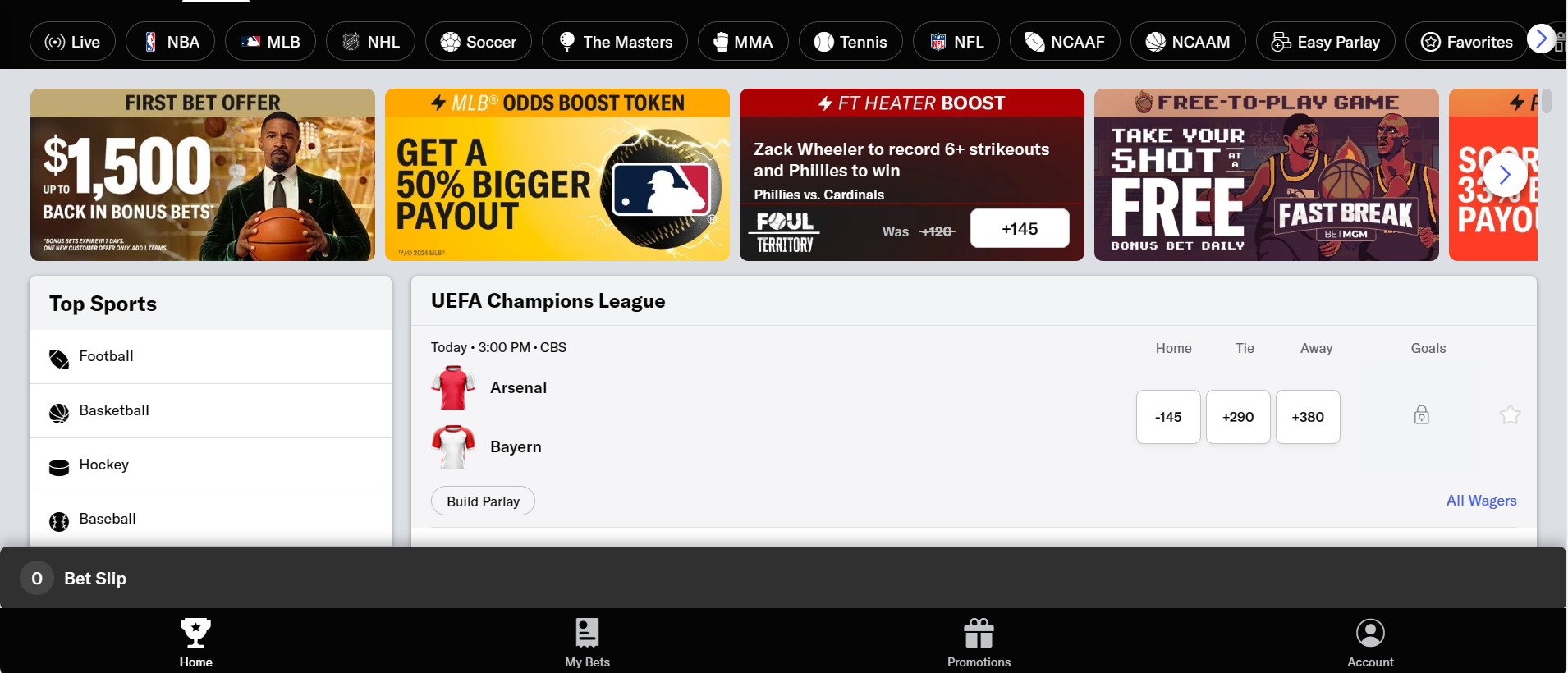 BetMGM shines in its promotions portion of its user interface. There are many, many ways to play and many more ways to save risk while betting on some fantastic lines with options and options galore.